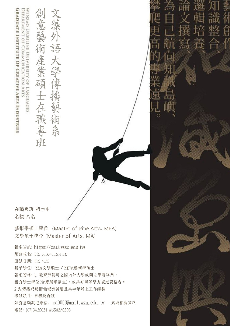 文藻外語大學傳播藝術系創意藝術產業碩士在職專班招生訊息